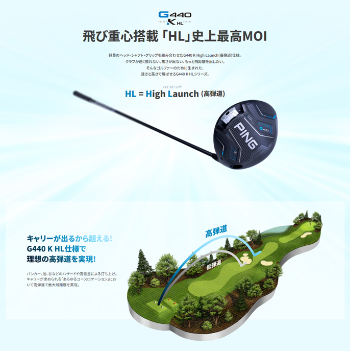 ピン G440 K HL ドライバーの特徴高MOIヘッド「10K」を超えて進化した「K」。MOIの限界に挑み続けるPINGが生んだ、新たなヘッド。「K」。それは、さらなる飛びとブレない安定を求める、新基準である。 ![]()