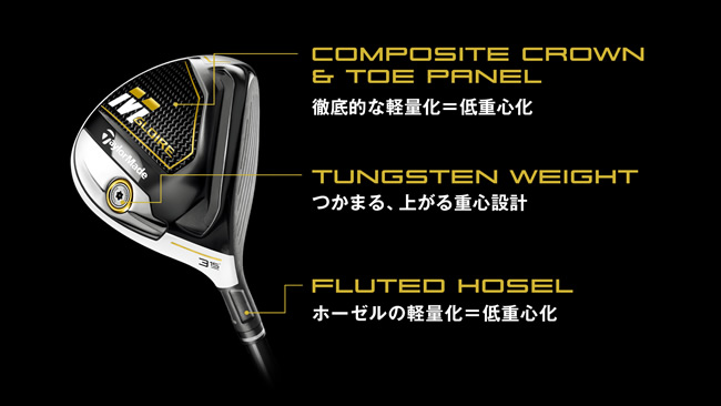 テーラーメイド M GLOIRE フェアウェイウッドの特徴テーラーメイドの新テクノロジー「ツィストフェース」をフェアウェイウッドに搭載 進化したアジャスタブル機能と飛距離性能が両立された『M GLOIREフェアウェイウッド』 の登場です。 ●ゴルファーの打点傾向から生み出された「ツイストフェース」により、トゥ上部、ヒール下部ヒットで出やすい弾道のバラつきを低減し、「飛距離」と「直進性」を 高いレベルで実現してくれます ●徹底した低重心化とドローバイアス設計により、寛容性の向上と高弾道の飛びを実現しています。